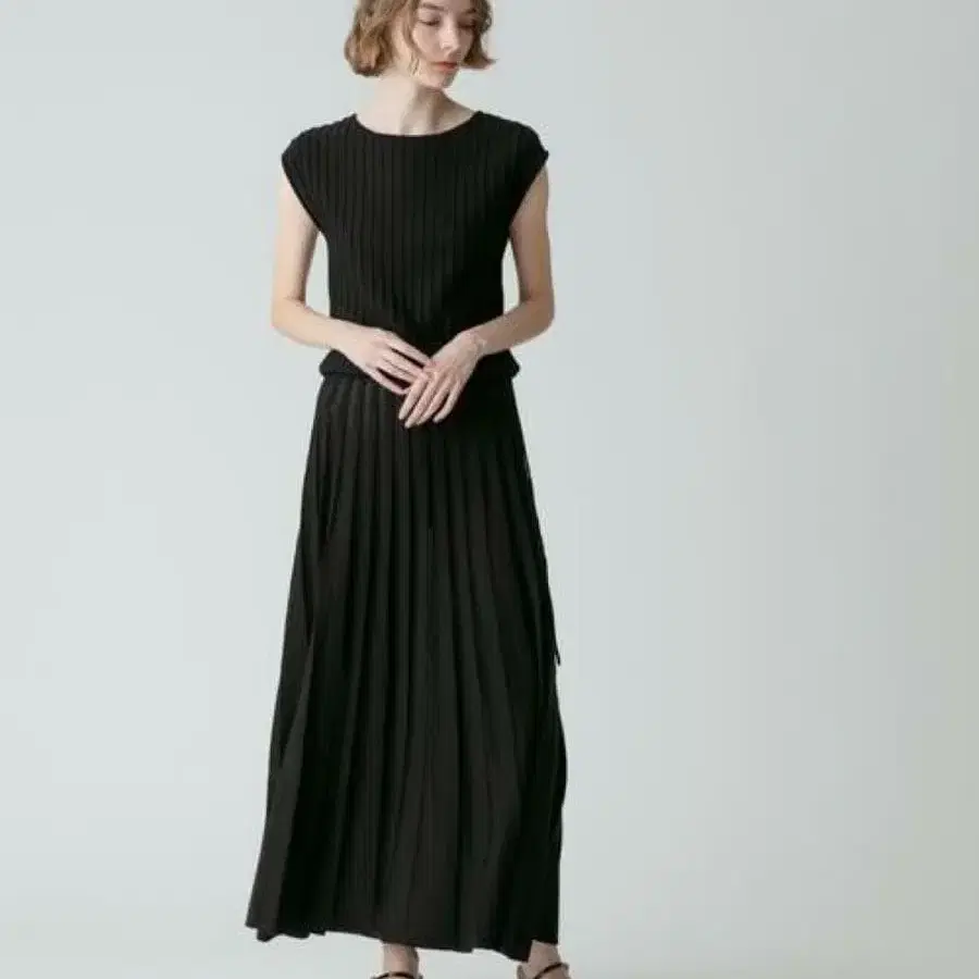입는 것만으로 스타일링이 완성되는 드라마틱한 니트 원피스. 맥시 스커트 부분은 볼륨감을 주면서도 니트의 드레이핑으로 너무 퍼지지 않고, 예쁜 소프트 플레어 실루엣을 만듭니다. 자연스럽게 브라우징되도록 허리 부분은 밴딩으로 처리되었으며, 더욱 긴 드로우 스트링의 가는 리본을 달아 사이드의 포인트로 활용했습니다. 팔뚝을 자연스럽게 커버하는 프렌치 슬리브 디자인입니다. 〇착용감 비침: 있음 안감: 있음(페티 스커트) 신축성: 있음 광택감: 없음 두께: 약간 얇음 무게: 약간 가벼움 댓글: 자연스러운 브라우징이 되도록 허리는 밴딩으로 되어 있으며, 사이드의 가는 리본이 포인트입니다 ◎ 밑단으로 갈수록 와이드해지는 플리츠는 걸을 때마다 흔들림이 예쁩니다.