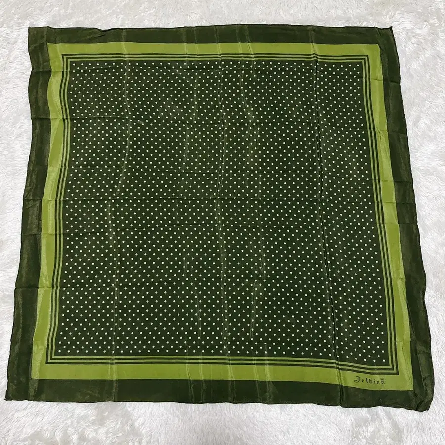 실크 100% Jelbien 스카프 60cm 도트 무늬 그린 모스그린