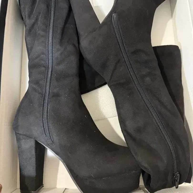 유메텐보 블랙 스웨이드 니하이 부츠 슬림