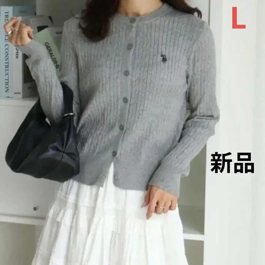U.S. POLO ASSN. 케이블 니트 가디건 그레이