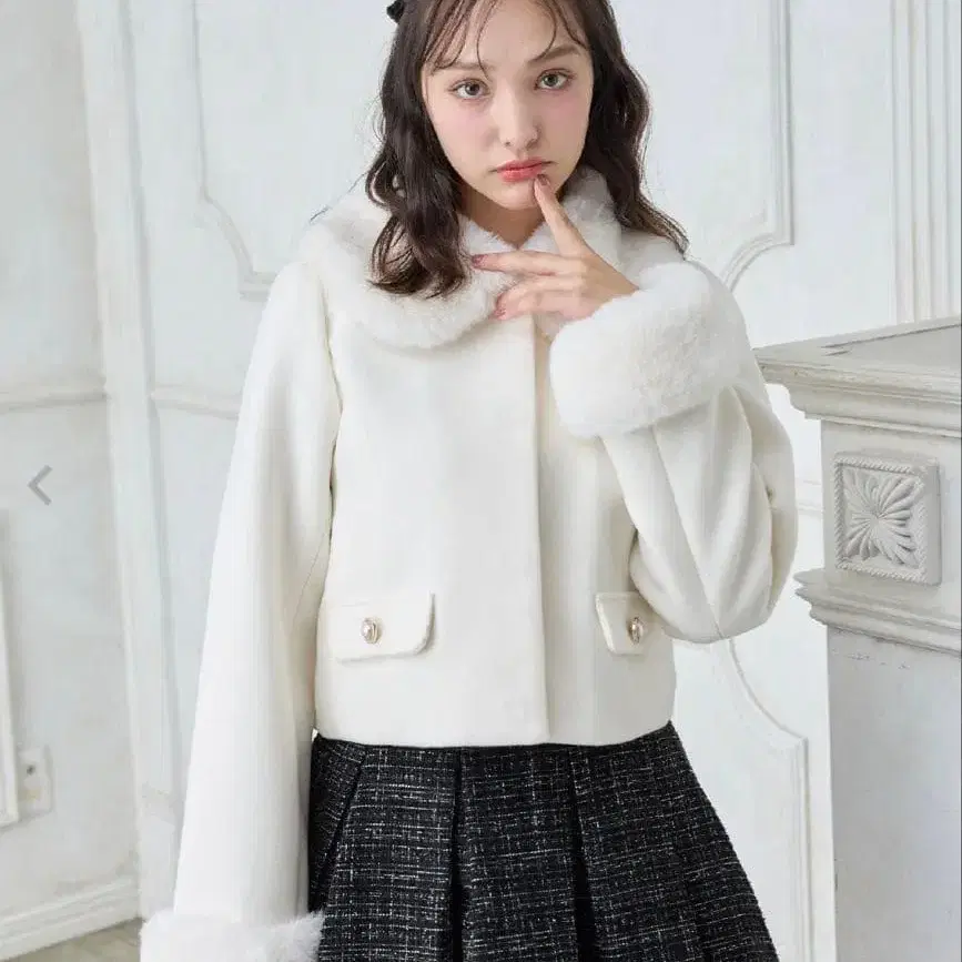 페미닌한 코디에 최적인, 고급스러운 인조 모피가 달린 숏코트입니다.