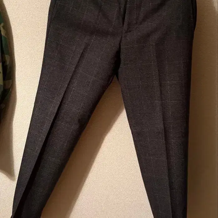 • 온리 울 체크 무늬 팬츠 슬랙스 수트 아래 다크 그레이 L
