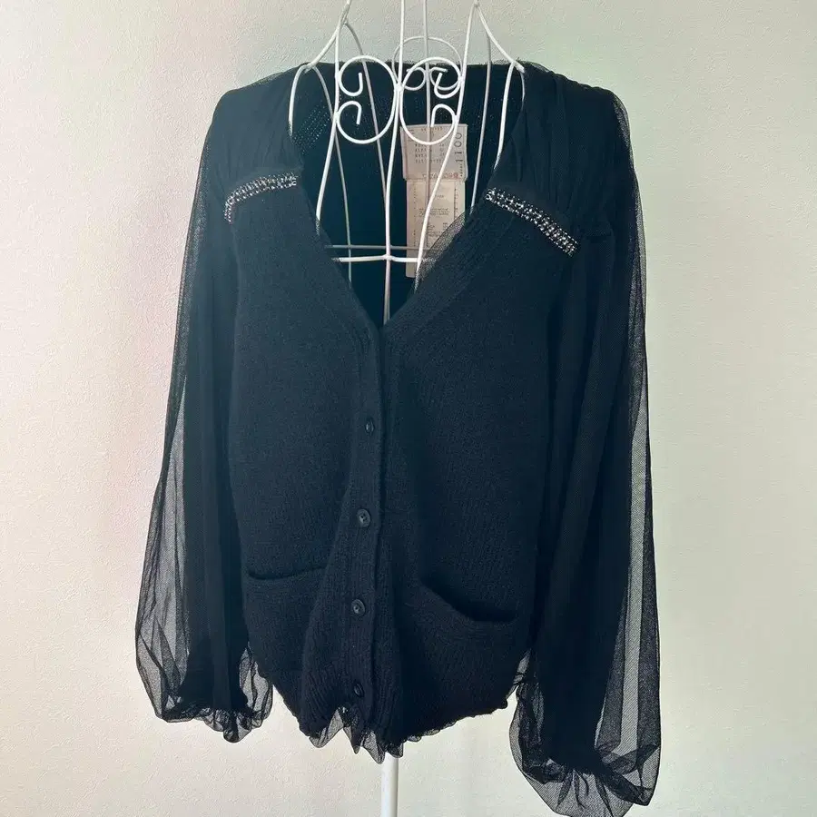[레어] 사카이 비쥬 튤 가디건 블랙 알파카 혼방 블랙