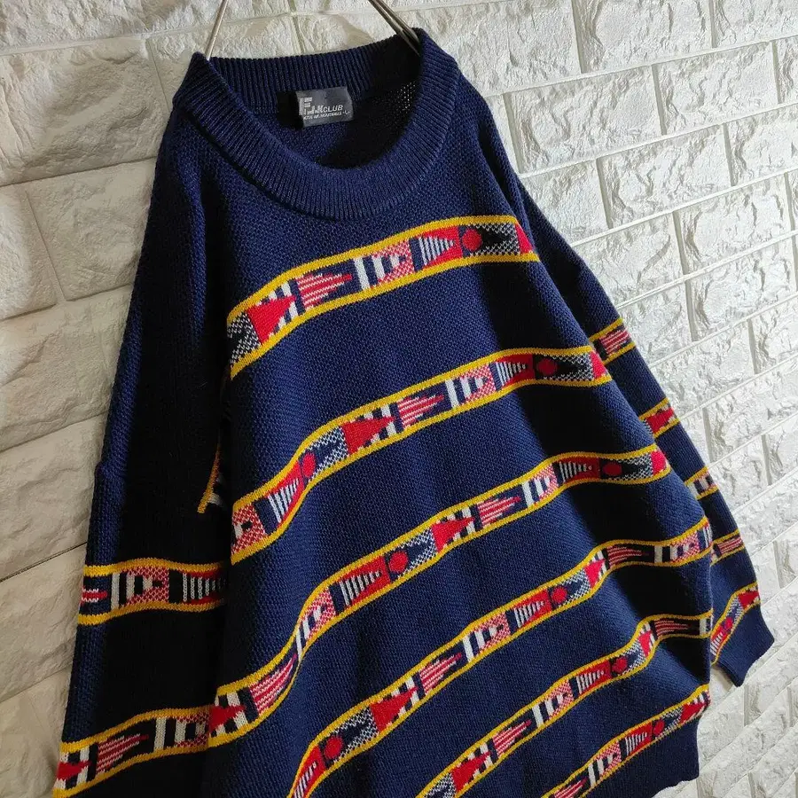 니트 스웨터 보더 국기풍 네이비 L