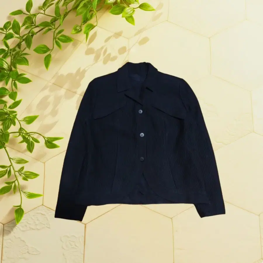 가는 스트라이프 패턴과 밑단의 V자 컷 디자인이 특징인 레트로 분위기의 빈티지 자켓입니다. 다크 네이비의 차분한 색감으로 캐주얼한 겉옷으로도, 깔끔한 오피스 스타일로도 활용 가능합니다.
