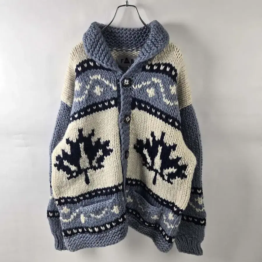 FAB 캐나다제 코위찬 니트 가디건 메이플 울 100% 빈티지