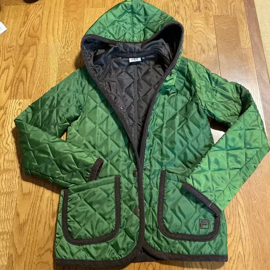새상품급 FILA 후드 부착 예쁜 그린 퀼팅 자켓 S