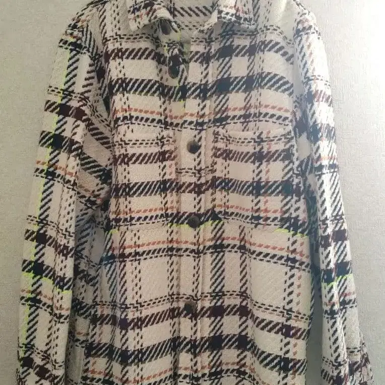ZARA 네온 체크 셔츠 자켓 화이트 M