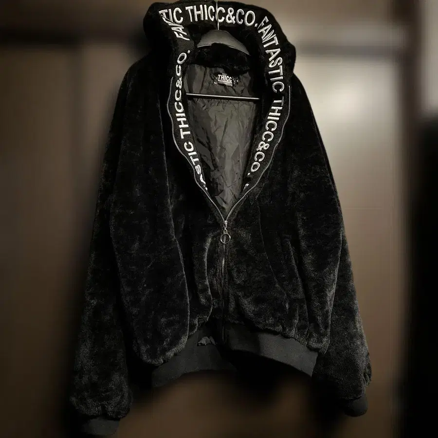 THICC 인조 모피 보아 자켓 봄버 자켓 후드티