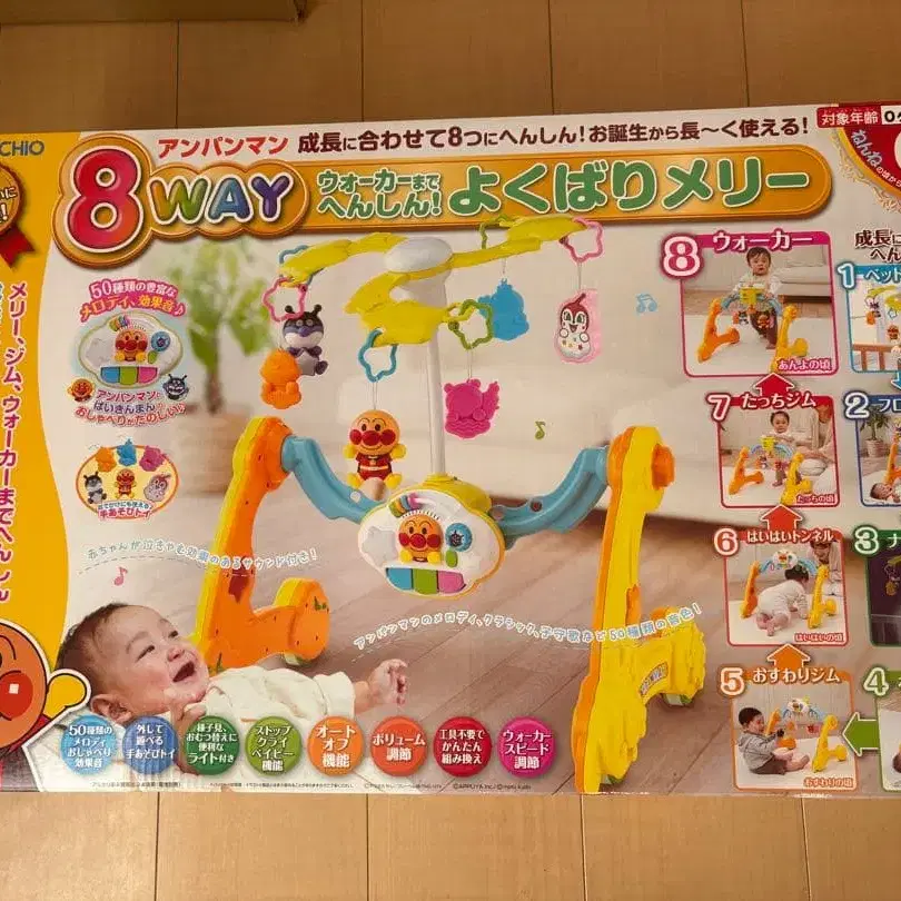 ● 세트 내용: 베이스 스탠드 x 2, 사운드 박스 x 1, 센터 바 x 1, 멜리 지지대 x 1, 멜리 캡 x 1, 별 모양 캡 x 2, 회전 암 x 1, 호빵맨 (비즈) x 1, 세균맨 (거울) x 1, 짤랑이 (비즈) x 1, 말랑이 토이 x 3, 별 모양 반지 x 6, 사용 설명서