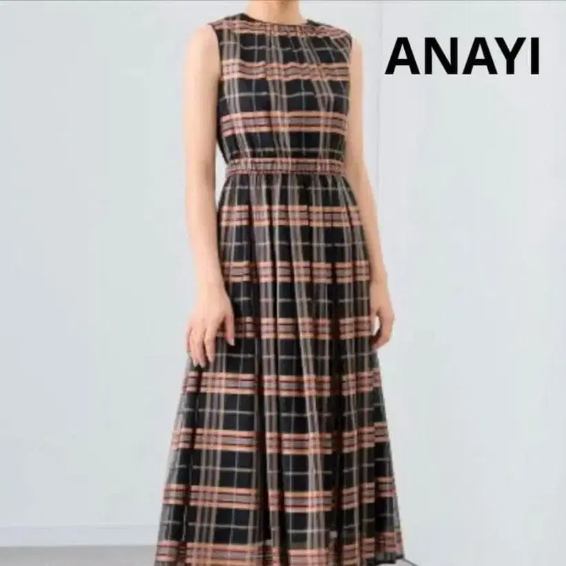 자동 번역되었어요. 원문보기ANAYI 아나이 시어 체크 슬리브리스 롱 원피스