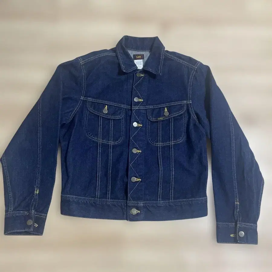 인디고 색상의 Lee 데님 자켓으로, 버튼 프론트와 포켓이 있어 실용적입니다.