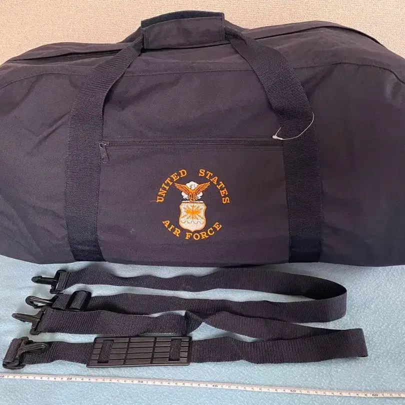 미국 공군의 로고가 새겨진 네이비 색상의 더플백. - 브랜드: United States Air Force - 색상: 네이비 - 스타일: 더플백 - 부속품: 스트랩 2개 - 가로 약 75cm - 세로 약 36cm 방문해 주셔서 감사합니다. 반으로 접어서 포장됩니다.