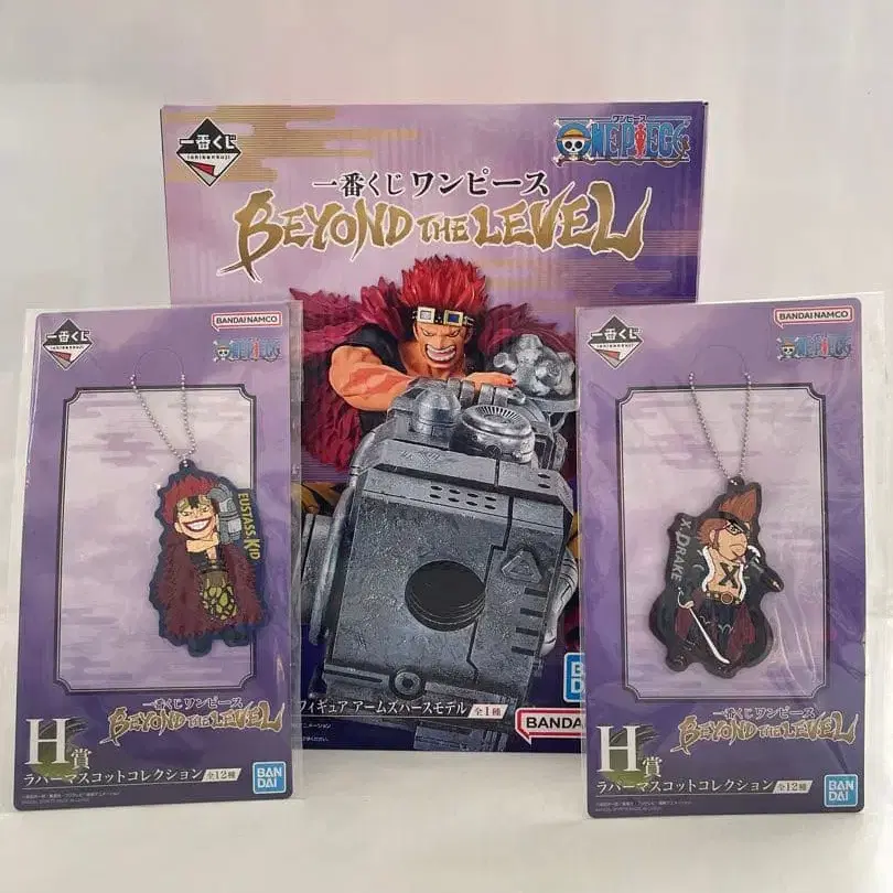 원피스의 BEYOND THE LEVEL 시리즈의 피규어와 아크릴 키링 세트.