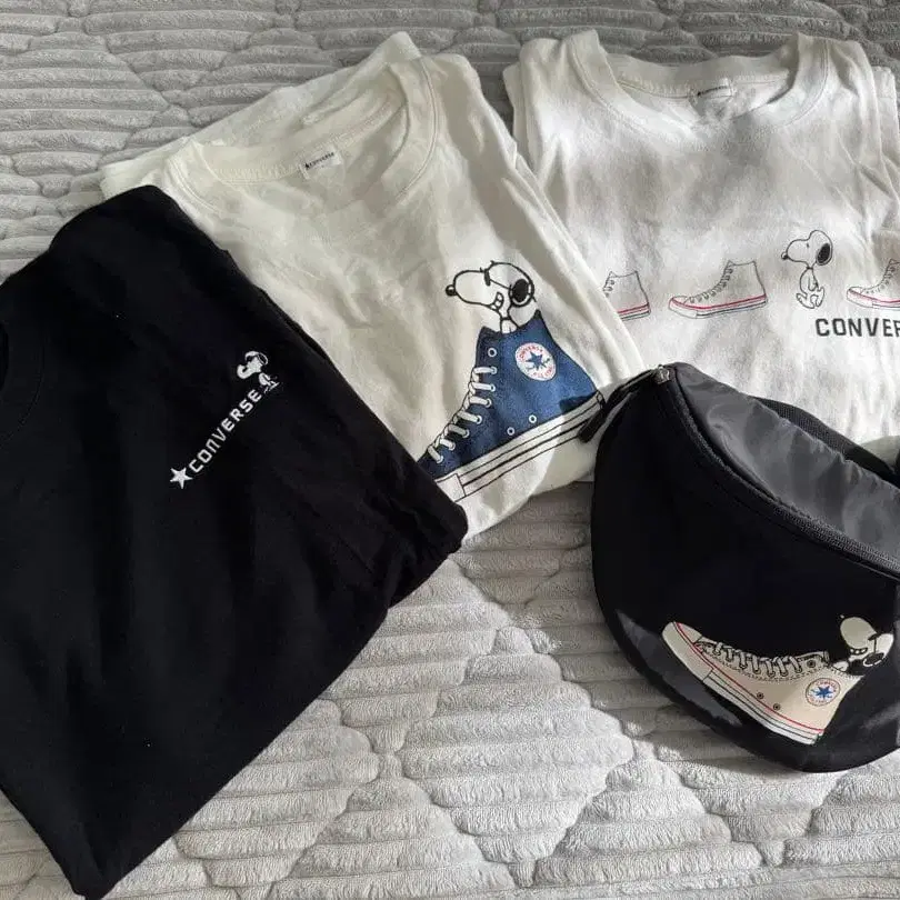 CONVERSE 스누피 콜라보 T셔츠 3종 및 웨스트 파우치