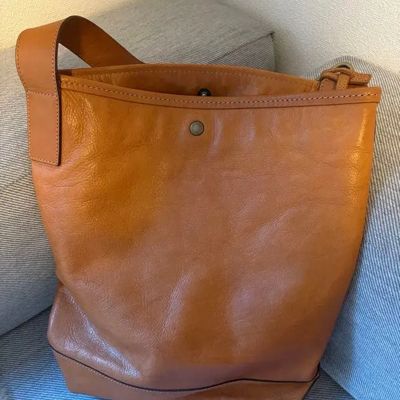 카멜 가죽 숄더 토트 보 데셍