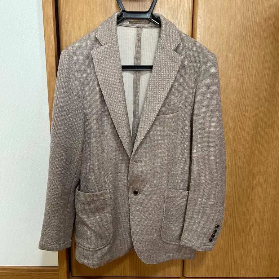 베이지 색 테일러드 자켓, 프론트 포켓 부착, 사이즈 44.