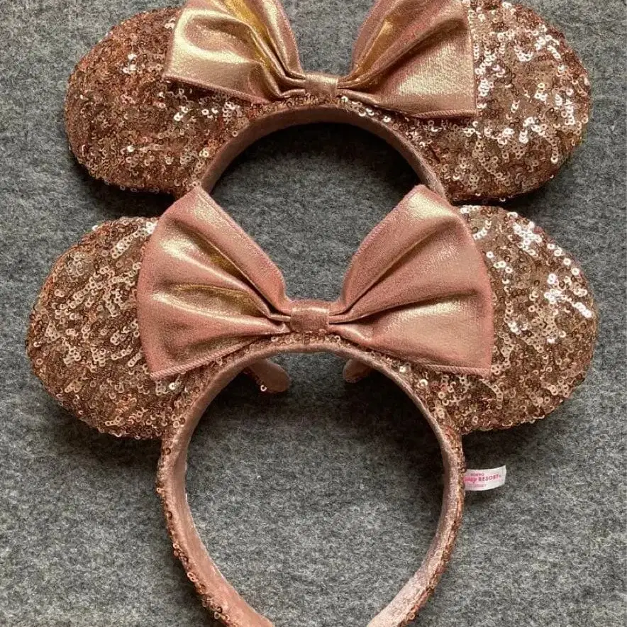 디즈니 머리띠 스팽글 핑크 골드 리본 미니 라메
