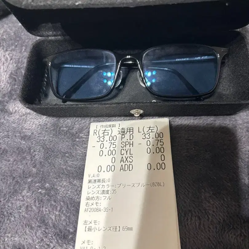 OWNDAYS 안경 재작년에 구매하여 거의 사용하지 않았기 때문에 비교적 새상품급이라고 생각합니다만, 자택 보관이므로 예민하신 분의 구매는 삼가해 주십시오. 유행하는 블루 렌즈로 교환 완료. 프레임은 블랙입니다. 도수는 이미지를 확인해 주십시오. 어쩌면 프레임만으로 생각해도 좋을 것 같습니다. 영수증은 포함되지 않습니다. 도수 참고용으로 올렸습니다. 남성용 안경