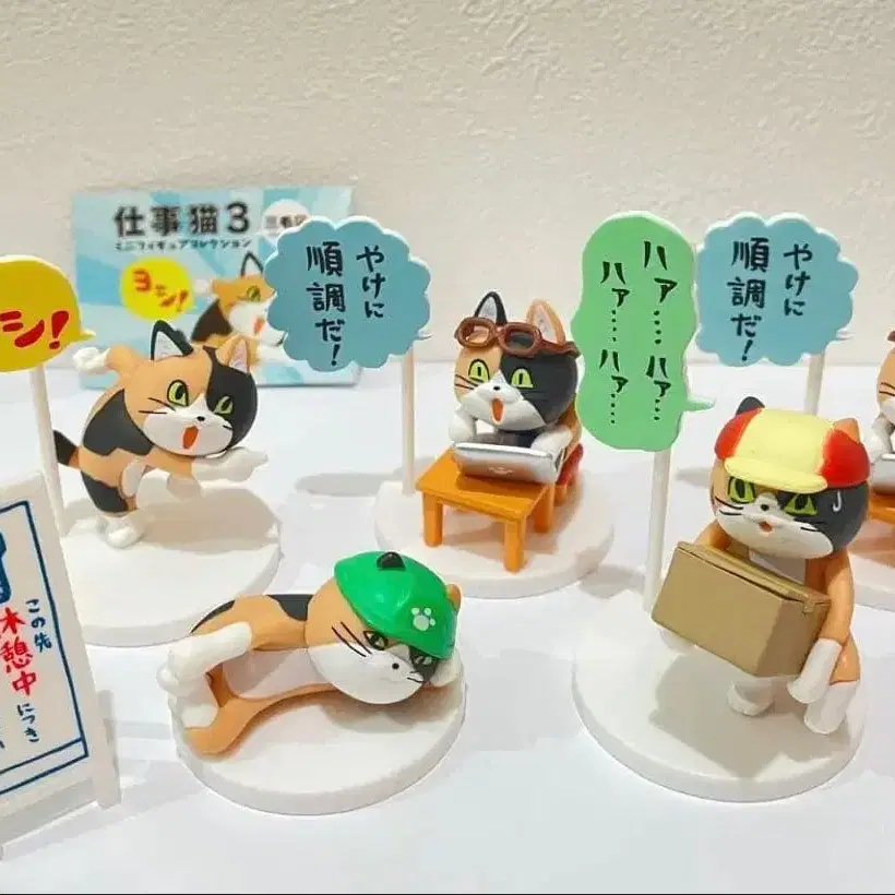 일하는 고양이 삼색 고양이 피규어 세트 5개 가챠가챠