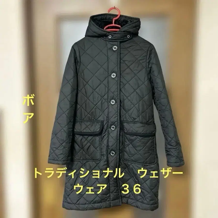트래디셔널 웨더웨어 블랙 퀼팅 롱 코트 36