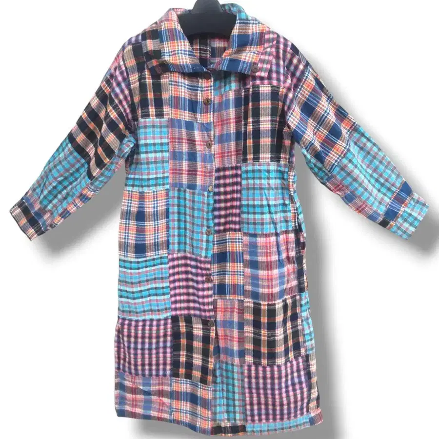 패치워크 멀티 컬러 롱 플란넬 셔츠