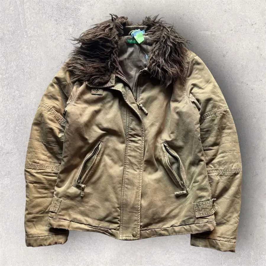 복슬복슬한 퍼 옷깃이 특징인 베네통의 레트로 밀리터리 계열 자켓입니다. 방한성이 높아 겨울 데일리로 사용하기 좋은 튼튼한 아우터입니다.