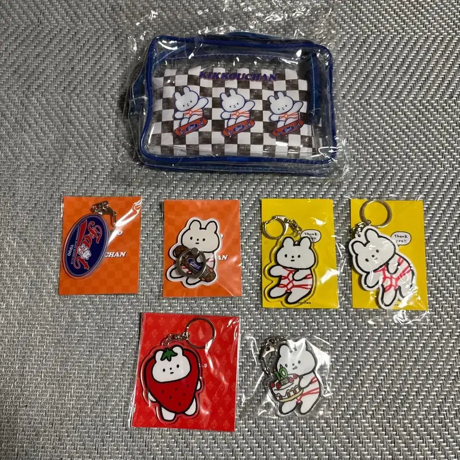 세트 내용: 키링 (러버 1개 & 아크릴 4개), 스마트폰 링 (1종), 파우치