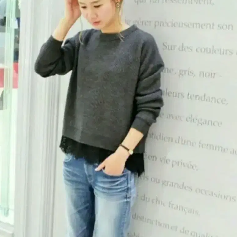 자동 번역되었어요. 원문보기가벼운 착용감과 레이스의 섬세한 대비가 매력적인 니트 풀오버.