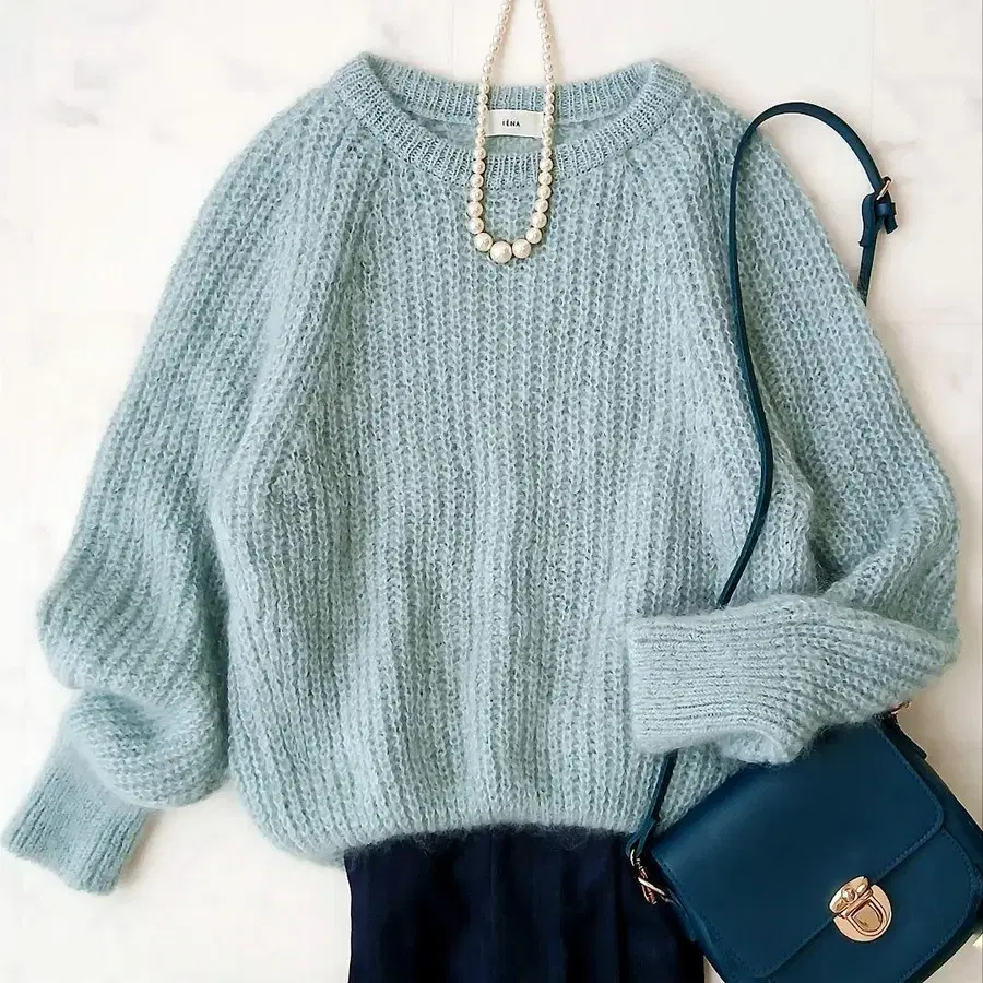 복슬복슬한 모헤어 소재에 부드러운 색감이 멋진 로우게이지 니트입니다.