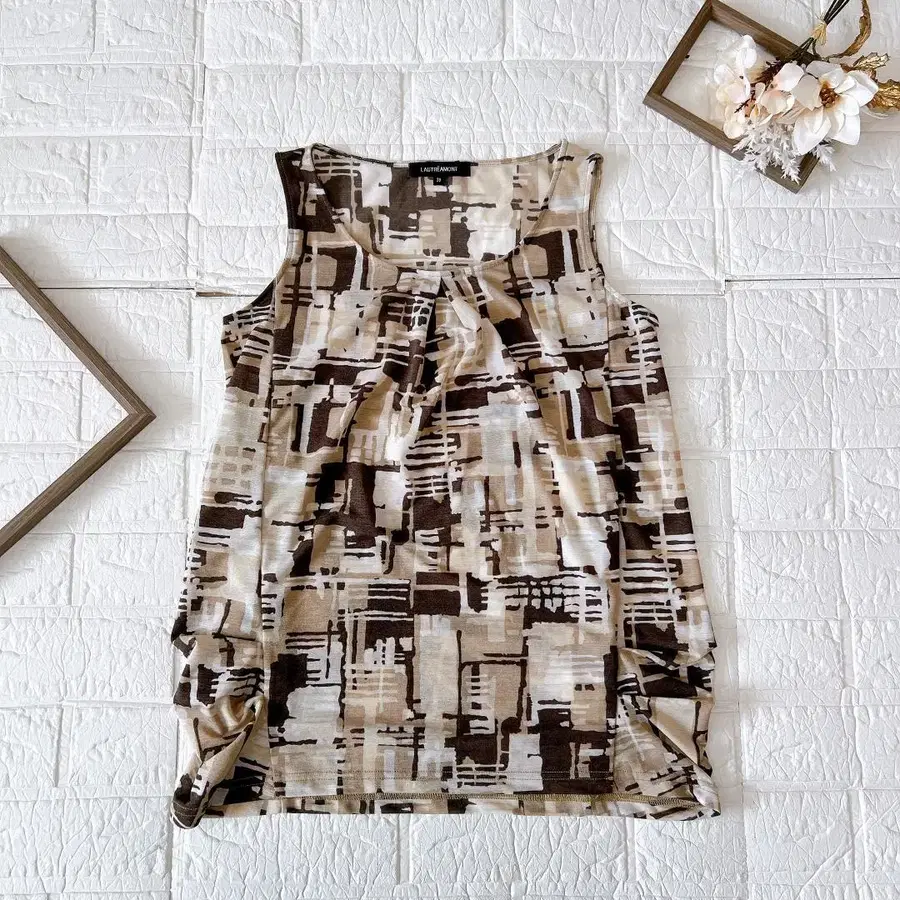 LAUTREAMONT 탱크탑 기하학 패턴 브라운 계열 사이즈 38 비침