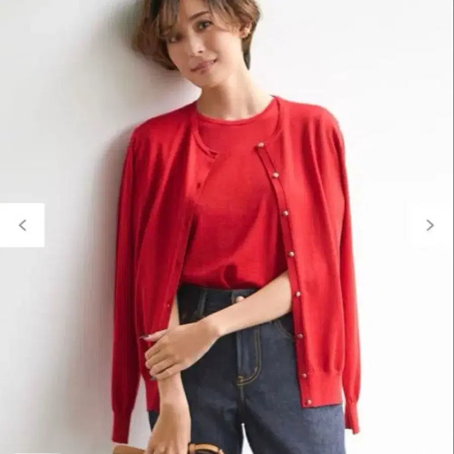 23구 새상품 지속가능성 울 가디건 & 반팔 니트 앙상블 레드