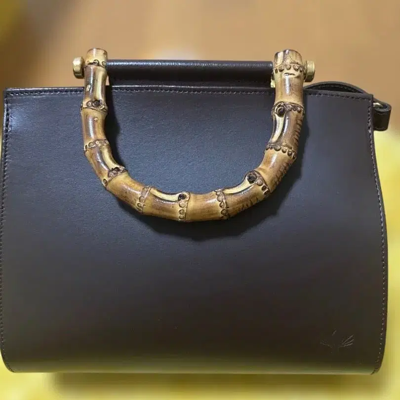 다크 브라운 색상의 천연 가죽에 대나무 핸들이 달린 스타일리시한 숄더백입니다. - 색상: 다크 브라운 - 핸들 소재: 대나무 - 로고: 엠블럼 디자인 - 스타일: 숄더백 방문해 주셔서 감사합니다. 색상 - 브라운 계열 소재 - 천연 가죽 부속품 - 숄더 스트랩 얼룩, 찢김 등 - 없음