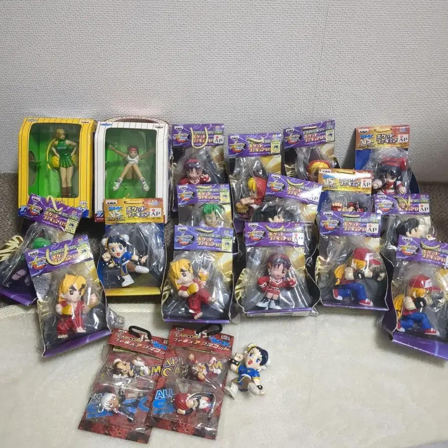 SNK vs CAPCOM 액션 피규어 세트, 미개봉 15체 이상, 춘리, 류 등 캐릭터 포함. - 브랜드: CAPCOM - 시리즈: SNK vs CAPCOM - 피규어 종류: 액션 피규어 - 캐릭터: 춘리, 류, 기타 - 패키지 상태: 미개봉 있음 - 수량: 15체 이상 - 부속품: 키체인 미개봉이지만 25년 전 제품이므로 노후화 있습니다. 이미지 참조 부탁드립니다. 방문해 주셔서 감사합니다.