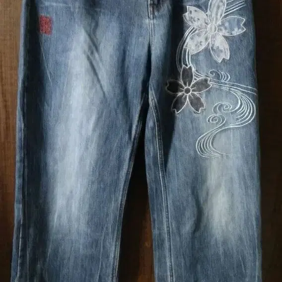 카라쿠리타마시 벚꽃 패턴 자수 데님 팬츠 사이즈 36 91.4cm