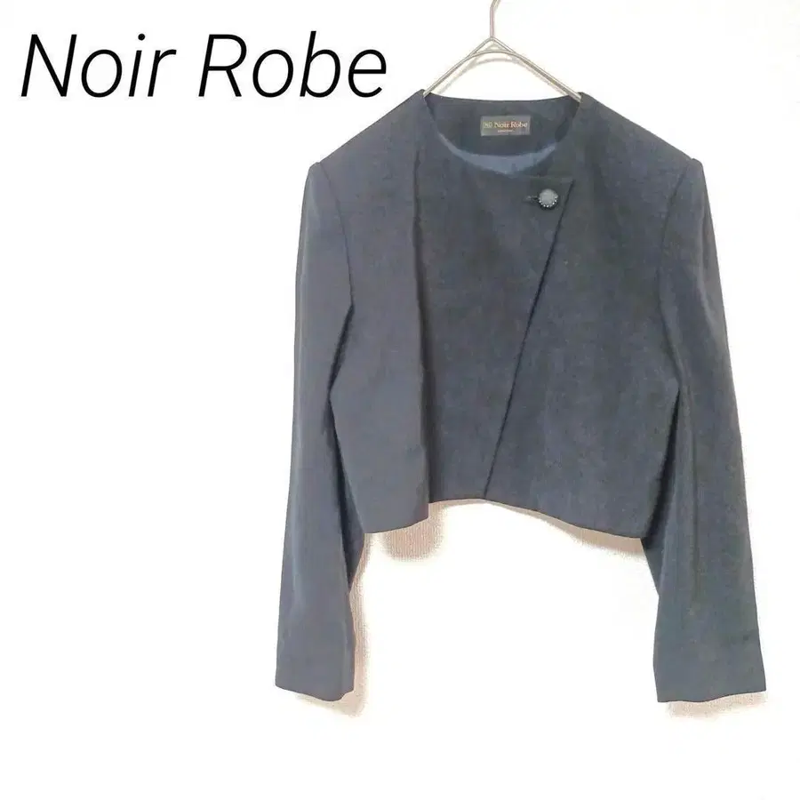 그레이 색상의 노카라 숏 자켓, 장식 버튼이 있어 스타일리시합니다.
