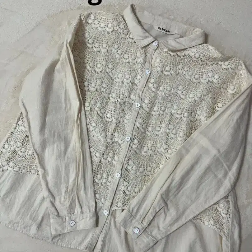 tumugu 레이스 디테일 긴팔 셔츠 크림색