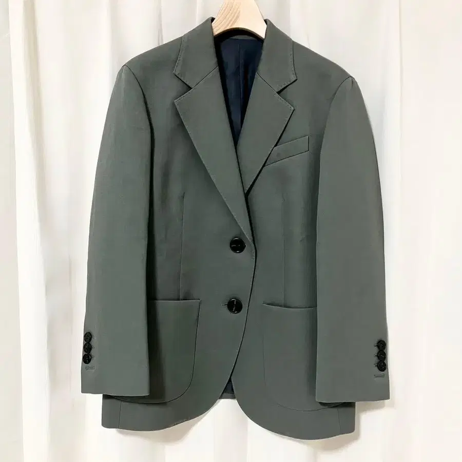 띠어리 프로젝트의 테일러드 자켓입니다. 가슴 포켓과 등 부분의 슬릿에 교육용 실이 그대로 붙어 있는 깨끗한 상태입니다. 표기 사이즈 0 어깨 너비/가슴 너비/소매 길이/기장 어깨 너비 - 43cm 가슴 너비 - 48cm 소매 길이 - 55cm 기장 - 67cm 컬러 - 카키 그레이 계열 얼룩, 찢김, 냄새 등 - 없음