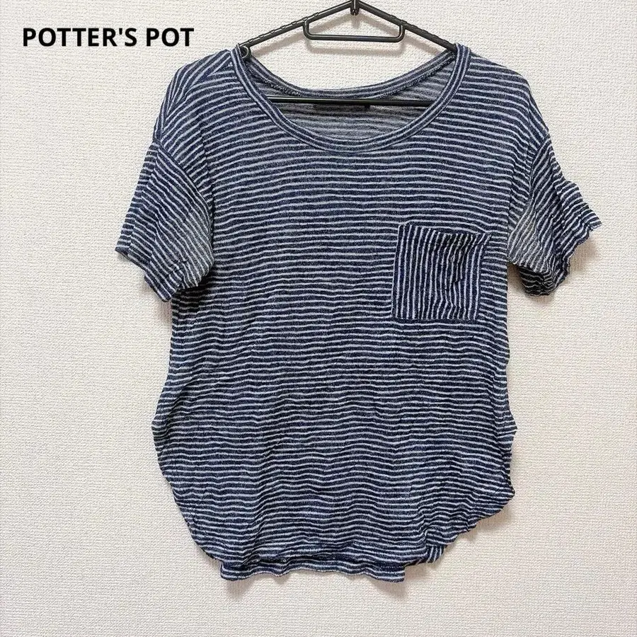 자동 번역되었어요. 원문보기네이비 스트라이프 디자인에 포켓이 달린 반팔 티셔츠.