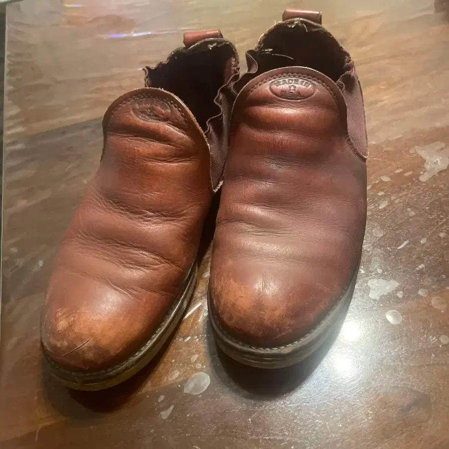 치페와 1990년대 브라운 가죽 사이드 고어 부츠