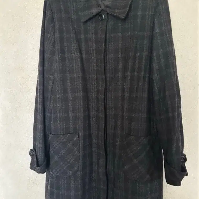 자동 번역되었어요. 원문보기그레이 계열 체크 무늬 테일러드 코트, 앞면에 2개의 포켓 부착.