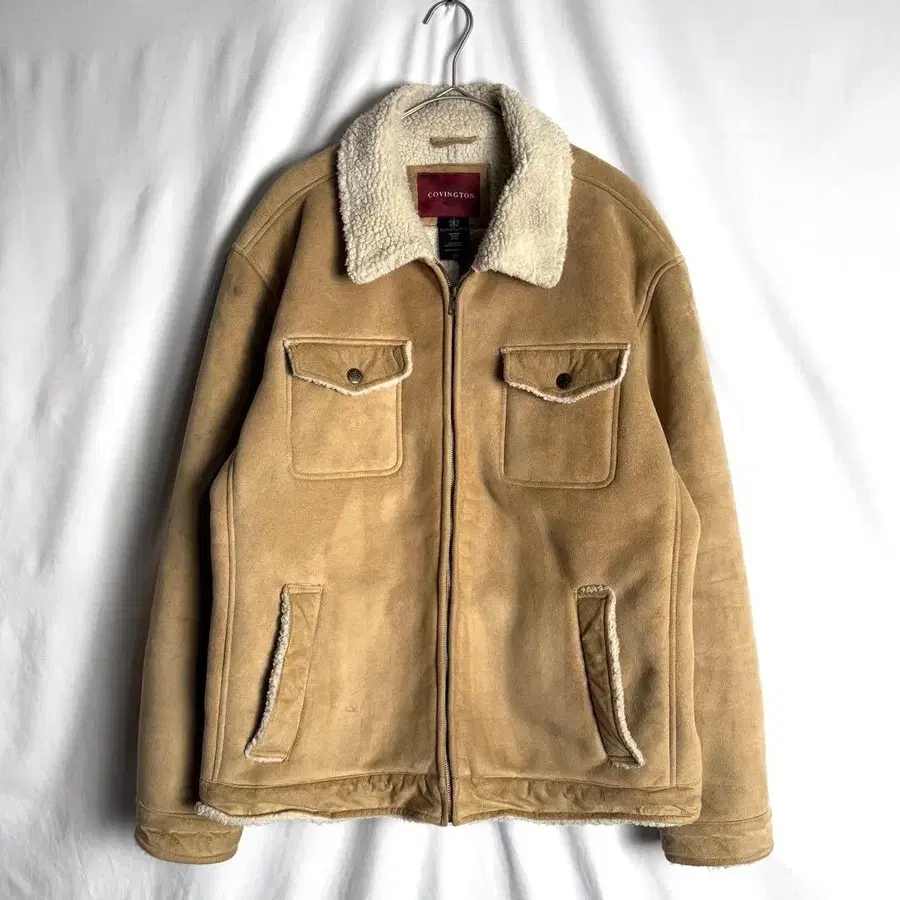 90s COVINGTON 페이크 무스탕 지퍼 블루종 XL