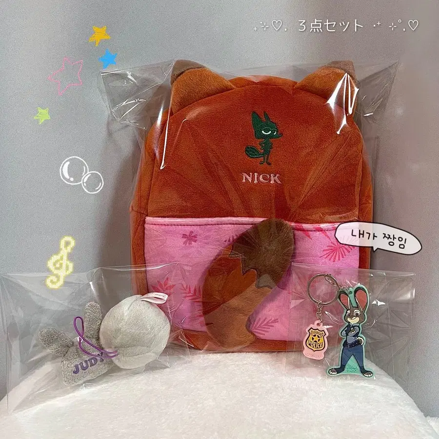 [ 주토피아 닉 꼬리 백팩 / 주디 꼬리 머리끈 주디 키링 3종 세트 ] 뽑기 게임에서 획득한 닉의 백팩과 주디의 꼬리 머리끈, 그리고 주디 마스코트 키링입니다 ‧ ⁺ ⊹˚. 원래 판매할 생각이 없었기에 택은 제거했지만, 사용하지 않고 소중히 보관했기 때문에 상태는 매우 깨끗합니다 ꒰ ᐡᴗ͈ ·̫ ᴗ͈ ꒱ ♡ ▶︎ 이미지에 있는 상품을 보내드립니다 ☁︎ ⋆. 발송 시에는 방수 대책을 겸해 정성껏 포장하여 보내드립니다(⋆ᴗ͈ˬᴗ͈)' 덤으로 산리오 메모장이나 스티커 등을 함께 드립니다. ※ 불필요하신 경우 알려주세요 m(_ _)m #주토피아2 #주토피아 #닉 #주디 #닉와일드 #주디팝스 #닉백팩