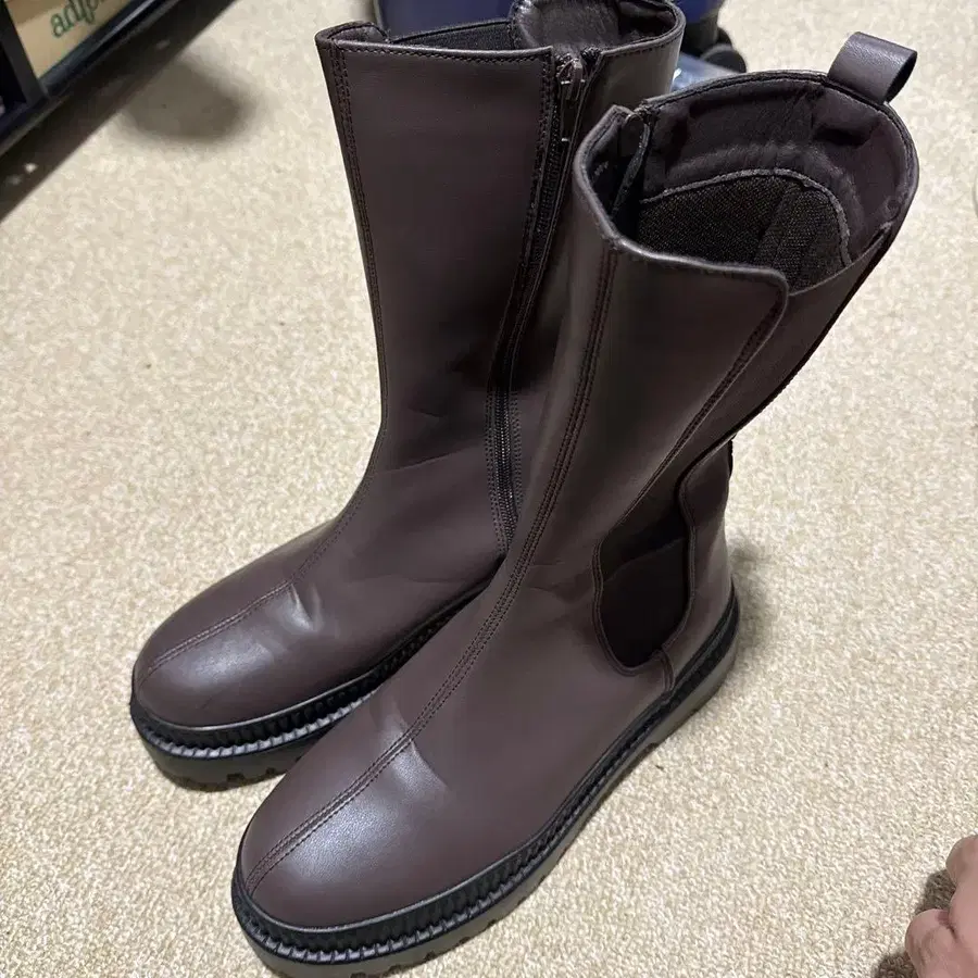클래식 엘프 사이드 고어 통굽 트랙 밑창 첼시 부츠 브라운
