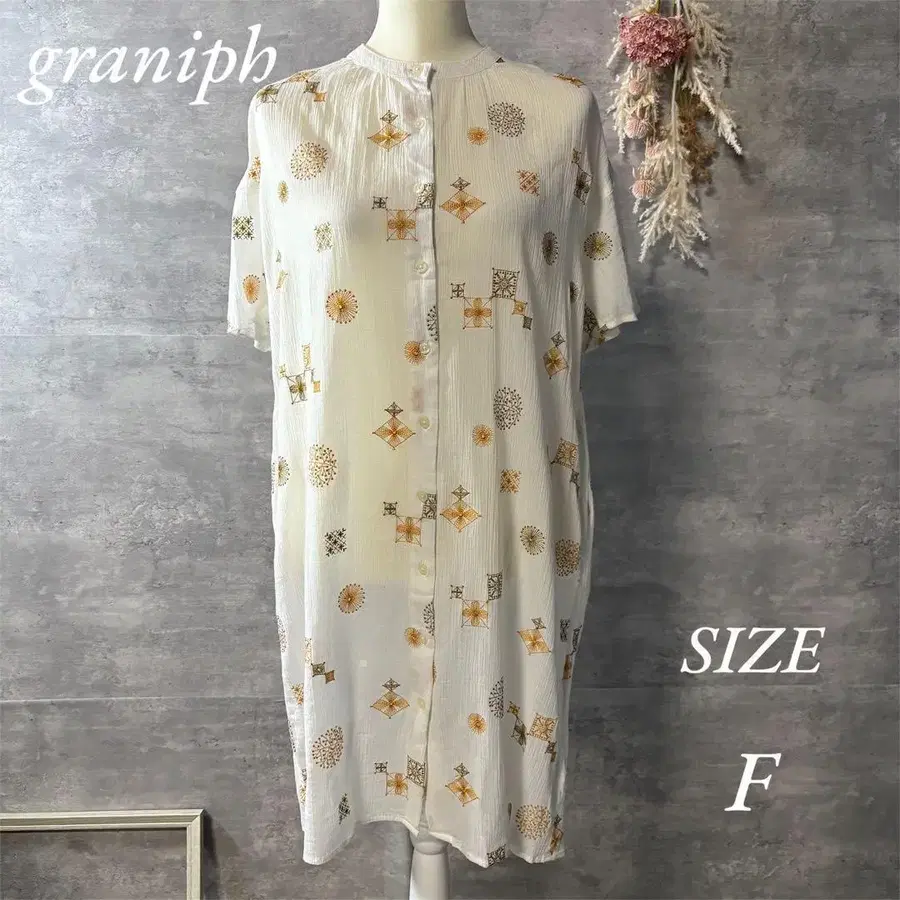 그라니프 반팔 자수 원피스 화이트 코튼 100% 프리 사이즈
