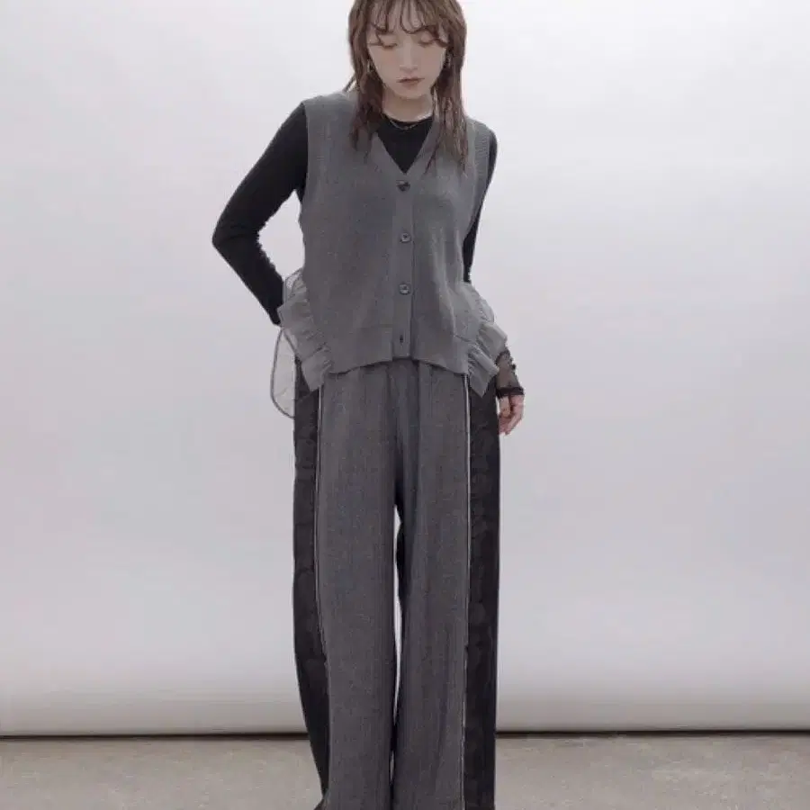 • 그레이 와이드 팬츠 면 100%