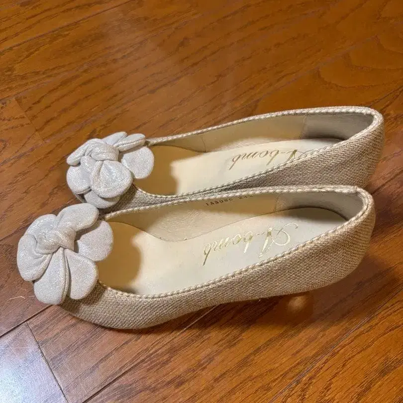 꽃 모티브가 달린 베이지 펌프스