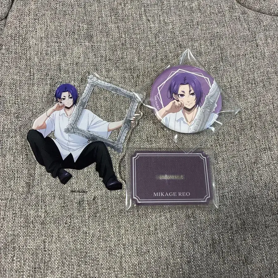 블루 록 미카게 레오 Flame 아크릴 스탠드 1개 캔 배지 1개 장식용으로 두었기 때문에 미세한 흠집이 있습니다.