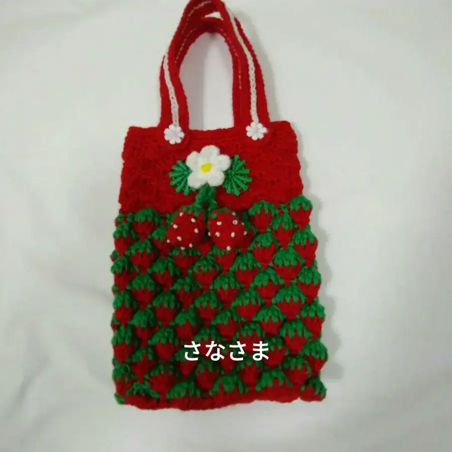 딸기 무늬 크로셰 뜨개질 스마트폰 파우치
