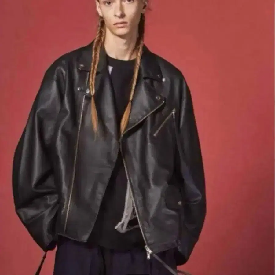 MAISONSPECIAL 램 가죽 프라임 오버 더블 라이더 자켓